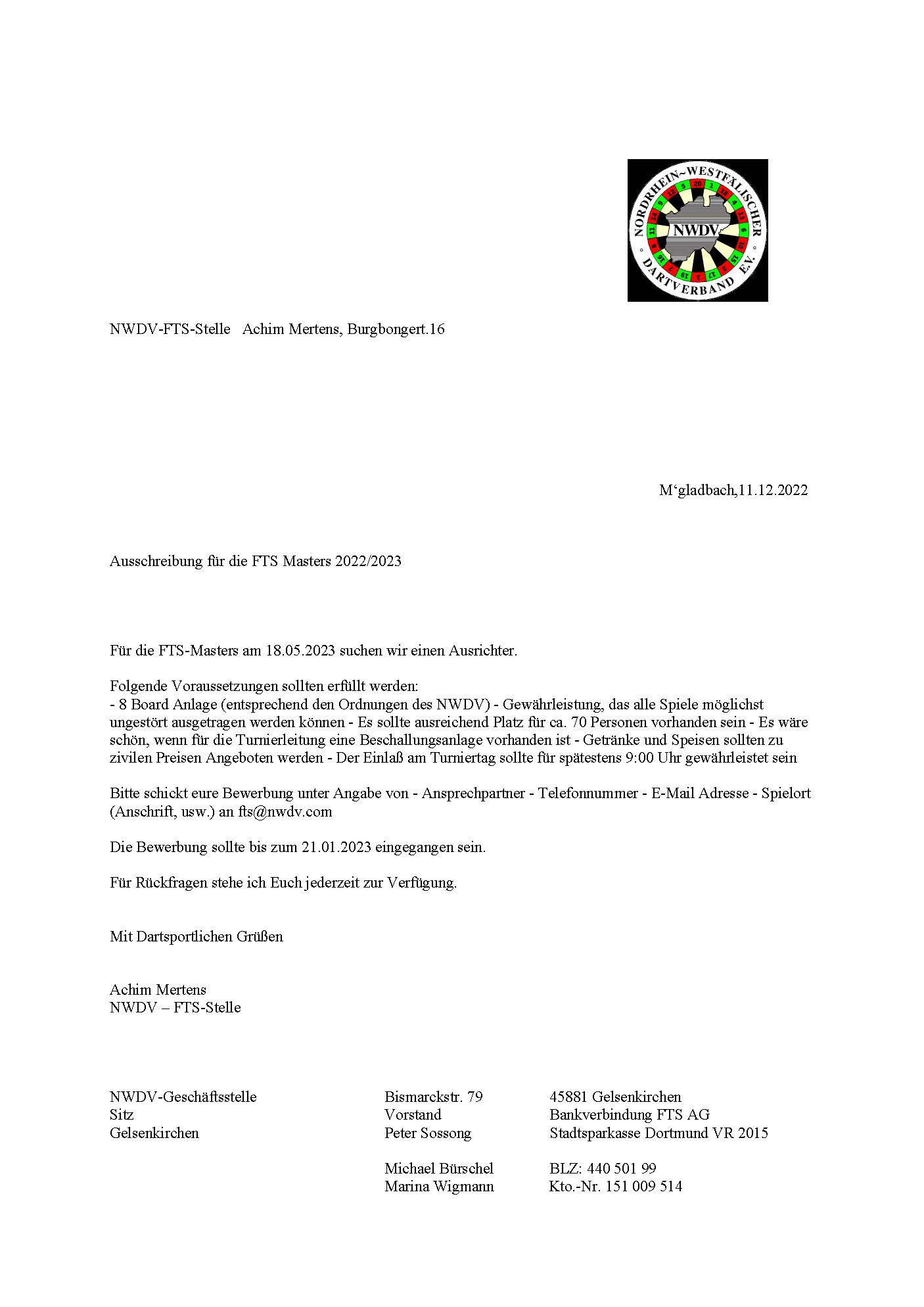 NWDV FTS Master Ausschreibung 22 - 23